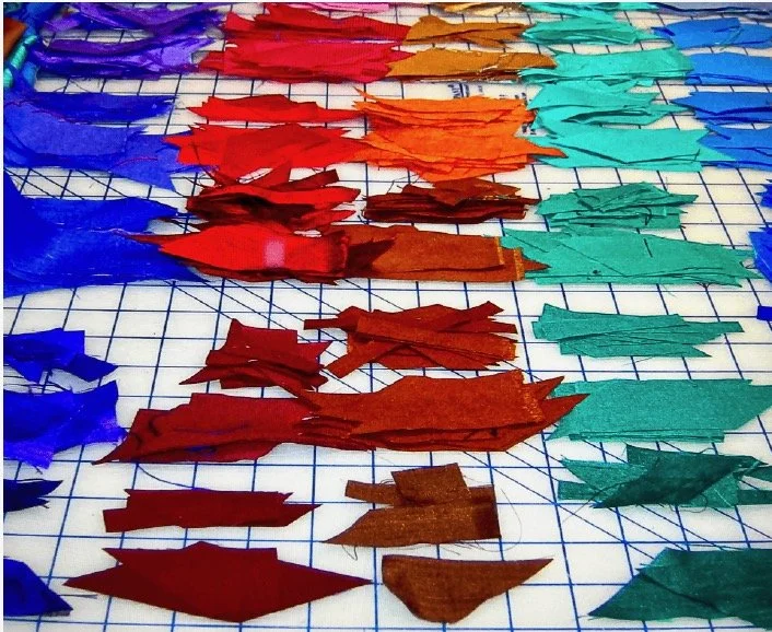 The art and science of building an artquilt: finding color, making color, themes, process, becoming an artist.